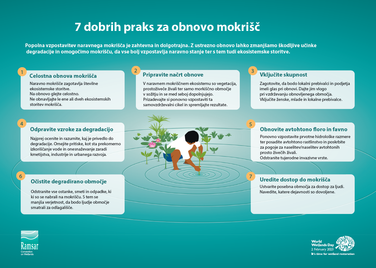 Letošnji svetovni dan mokrišč, ki ga vsako leto obeležujemo 2. februarja, poteka pod sloganom: Čas je za obnovo mokrišč!