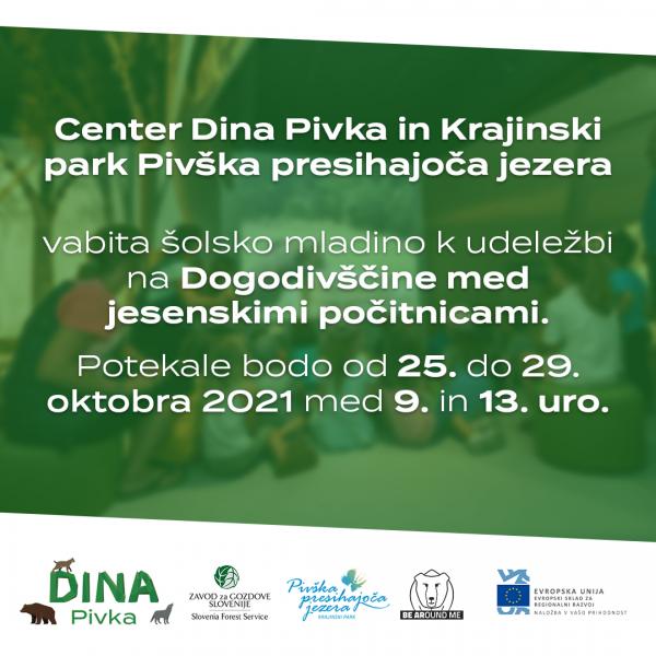 Vabljeni na Dogodivščine med jesenskimi počitnicami Sodelavci Krajinskega parka Pivška presihajoča jezera in Centra o velikih zvereh DINA Pivka smo